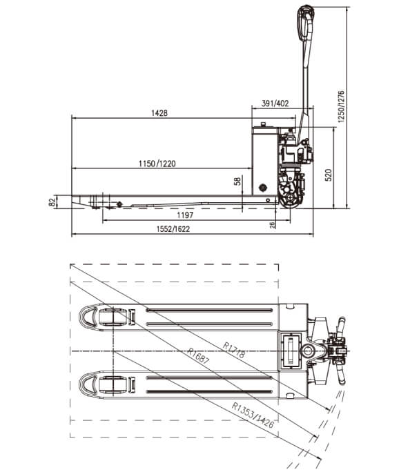 Высота вил в нижнем положении (h13): 82 +/-2мм